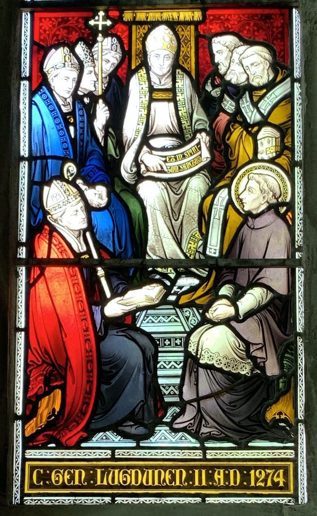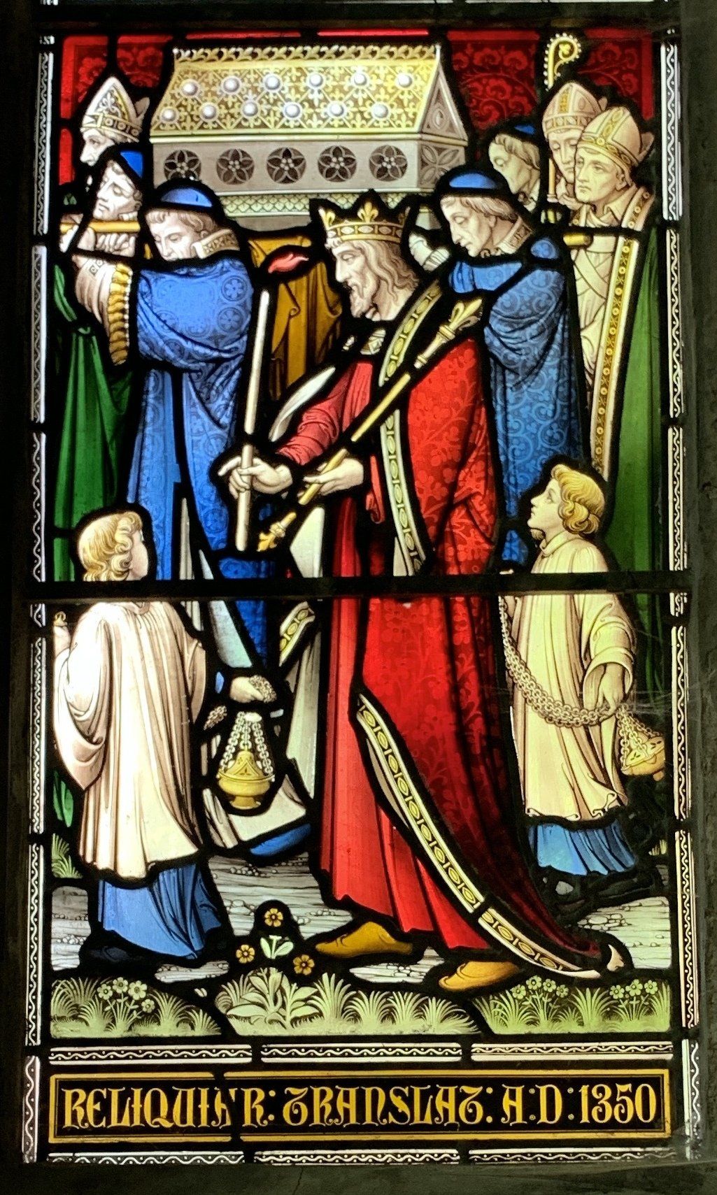 On 17th April we had been invited to Hereford Cathedral to celebrate a Mass marking the 700th Anniversary of the Canonisation of St Thomas of Hereford, by Pope John XXII. The saint is worth remembering, and his life and Hereford connections are told in the west window of the Abbey Church. Our Archivist, Brenda Warde, tells the story.