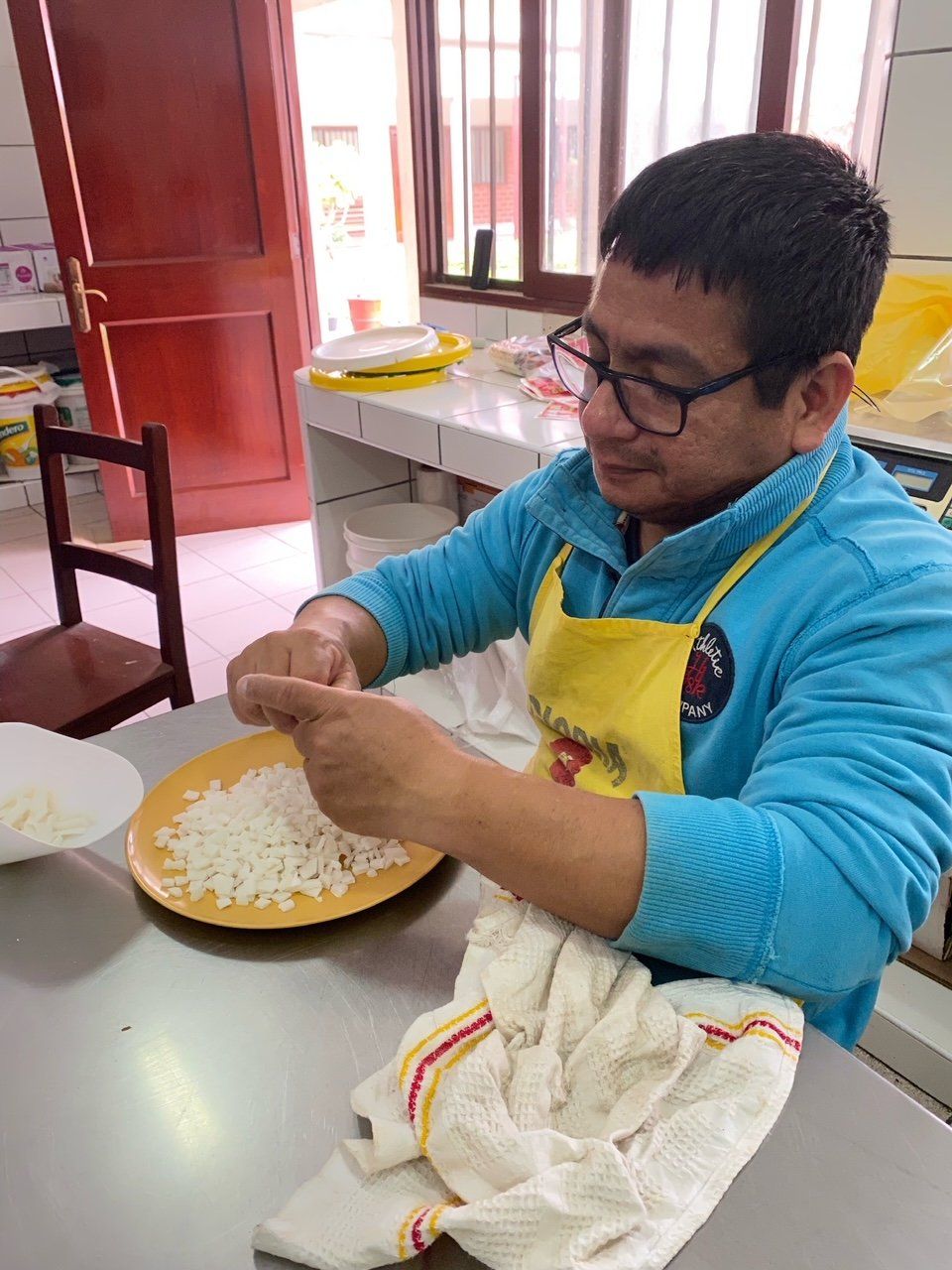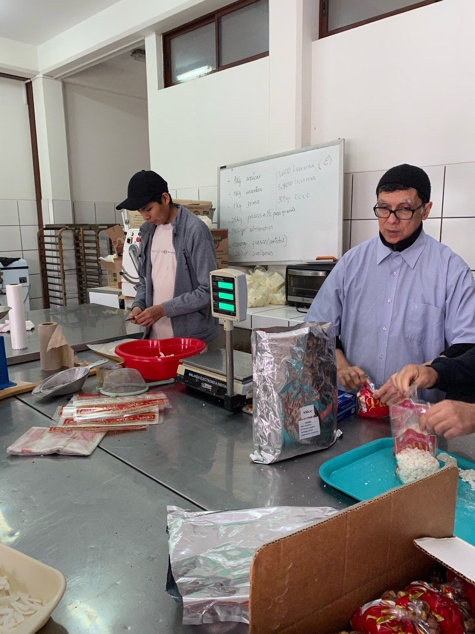 Apologies for the brevity of this message. Yesterday was an extremely busy day, which included joining the brethren in their common work, this time chopping up coconut flesh ready for making a new recipe for panettone, visiting a clinic for a scan (they take aches and pains very seriously here - oh why did I complain?) and then driving to the airport to collect Abbot Benito of Las Condes Abbey, Santiago, Chile. The traffic was a nightmare and it was after 10pm when we got back to the monastery.