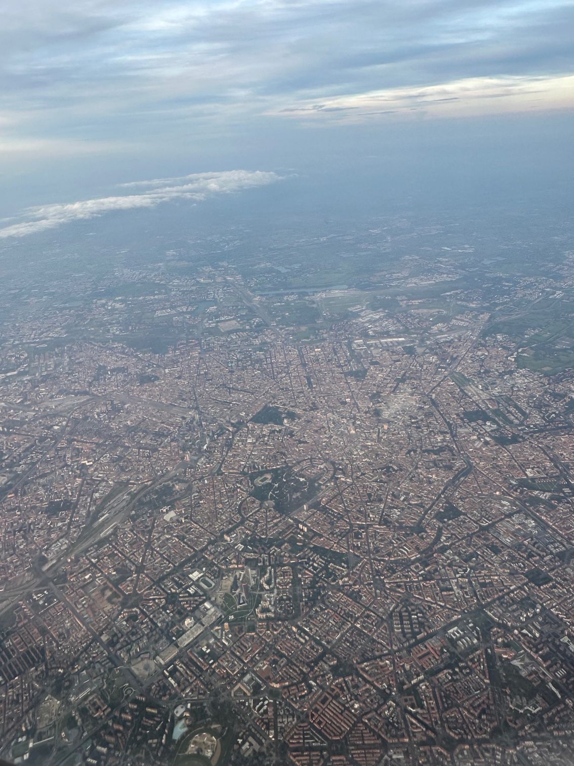 It’s been a bumpy flight, and we are now descending into Milan Linate, the city centre airport. I only have two distant shots of Paris and one of Milan to share with you today. We’re overflying Lugano at the moment and we’ll be arriving just an hour late. It could have been much worse!