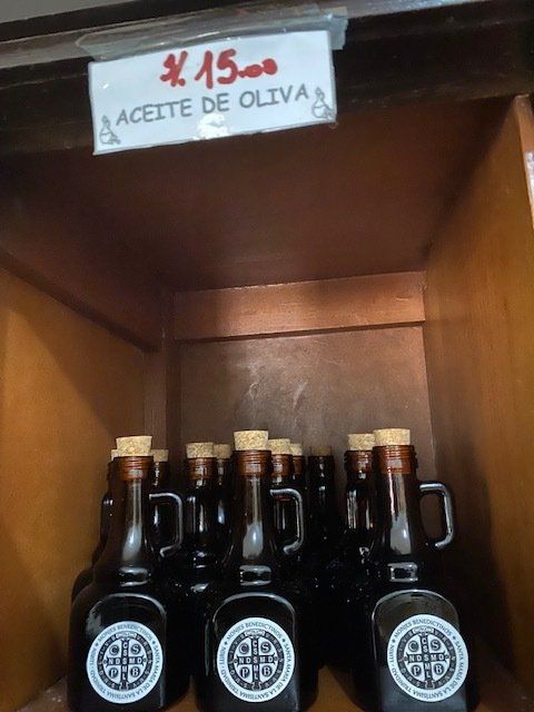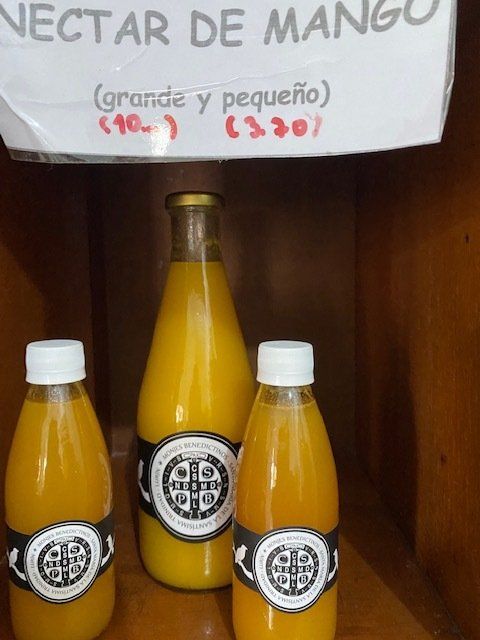 First of all, apologies for possibly confusing you by writing about the wrong Gospel passage yesterday. Blame it on jet lag, but it was entirely my fault. Yesterday after Terce, the short office that’s followed by a long morning’s work, we sorted out and priced for sale the many things I’d brought out for the shop here, paid for from their own funds: medals, crucifixes and statues of St Benedict of all shapes and sizes, and vast amounts of perfumed Greek and Ethiopian incense, which has become very popular in Peru. These will be added to the many items they sell, which are produced by the monks, panettone, bread, smoothies, jams, fruit vinegars, altar wine and even olive oil. I find their hard work and enterprise quite overwhelming. Our photographs show some of the things for sale in the monastery shop.