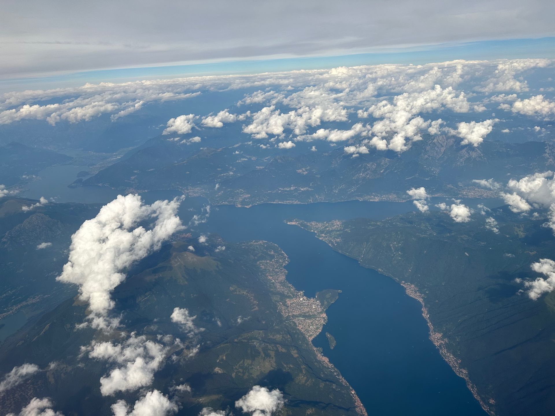 I’m going to give the Gospel a rest today. It’s the Parable of the Wheat and the Darnel for one thing and I’ve commented on it several times lately. Secondly, it’s almost time to walk to the the gate, some distance away, for the Birmingham flight and then the drive back to Belmont. I can show you the lasagne I had for lunch today, the genuine recipe and ingredients, and a view of Lake Como from the plane. I worked there the Summer of 1969 as a tour guide. Such happy memories, I was based at Bellagio. Some of you might have been there.