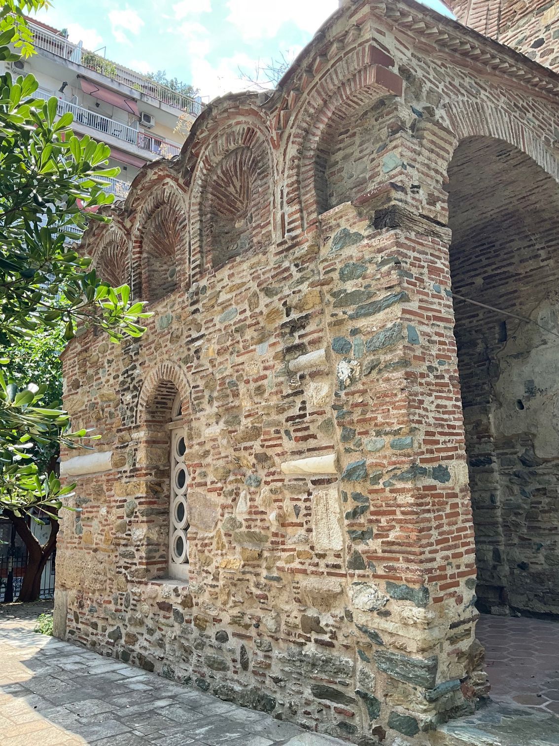 Finally, I visited the church of St Panteleimon, Pantaleon in English, from which the word pantaloon is derived. Another church rebuilt in 14th century and originally part of a monastic complex, it’s now beautifully restored but surrounded by tall department blocks. I love the brickwork and the reuse of Roman columns. Thessaloniki was an important city of the Roman Empire, hence St Paul’s visit and long stay there, and there are as many Roman as ancient and Byzantine Greek monuments to see and enjoy. Sadly the great fire of 1917 destroyed much of the old city. Thessaloniki was very much a Jewish city: it had 17 synagogues. Kamel Ataturk, founder of modern Turkey, was born here. It was a city where Muslims, Jews and Christians lived in peace and harmony. If you’re interested I could recommend a few books on the history of the city, as I’ve often repeated, one of the most interesting and beautiful places on earth.