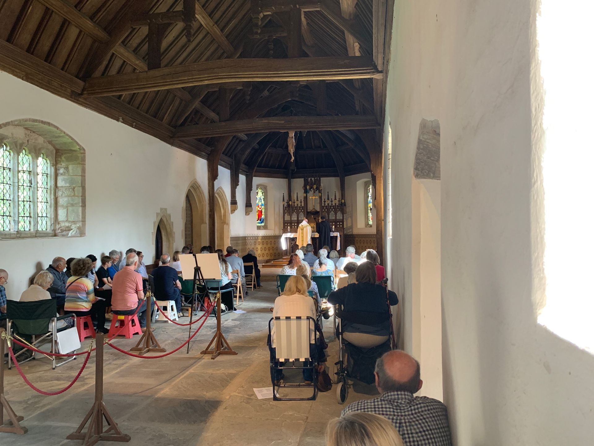 The feast of the Assumption of Our Lady is the most wonderful of feasts and this year’s celebration was certainly one to be remembered with affection and gratitude. The celebrations of Mass at Belmont were prayerful and inspiring, while the annual Mass at Rotherwas Chapel, dedicated to the Assumption of Our Lady, was both memorable and uplifting, truly joyful and supportive of our faith. Then after Vespers and Benediction, Br Peter, Fr Augustine and I went to Moccas church, like Belmont dedicated to St Michael and All Angels, for an evening of Gregorian chant and organ music. We were accompanied by our amazing organist and dear friend Jonathon Nicholls. As usual, it was a great joy to sing chants in honour of Our Lady at Moccas before such a large and appreciative congregation. The statue of Our Lady was with us again this year and the event was arranged to draw attention to the need to keep the waters of the River Wye clean and safe. We congratulate the organisers for such an outstanding evening.