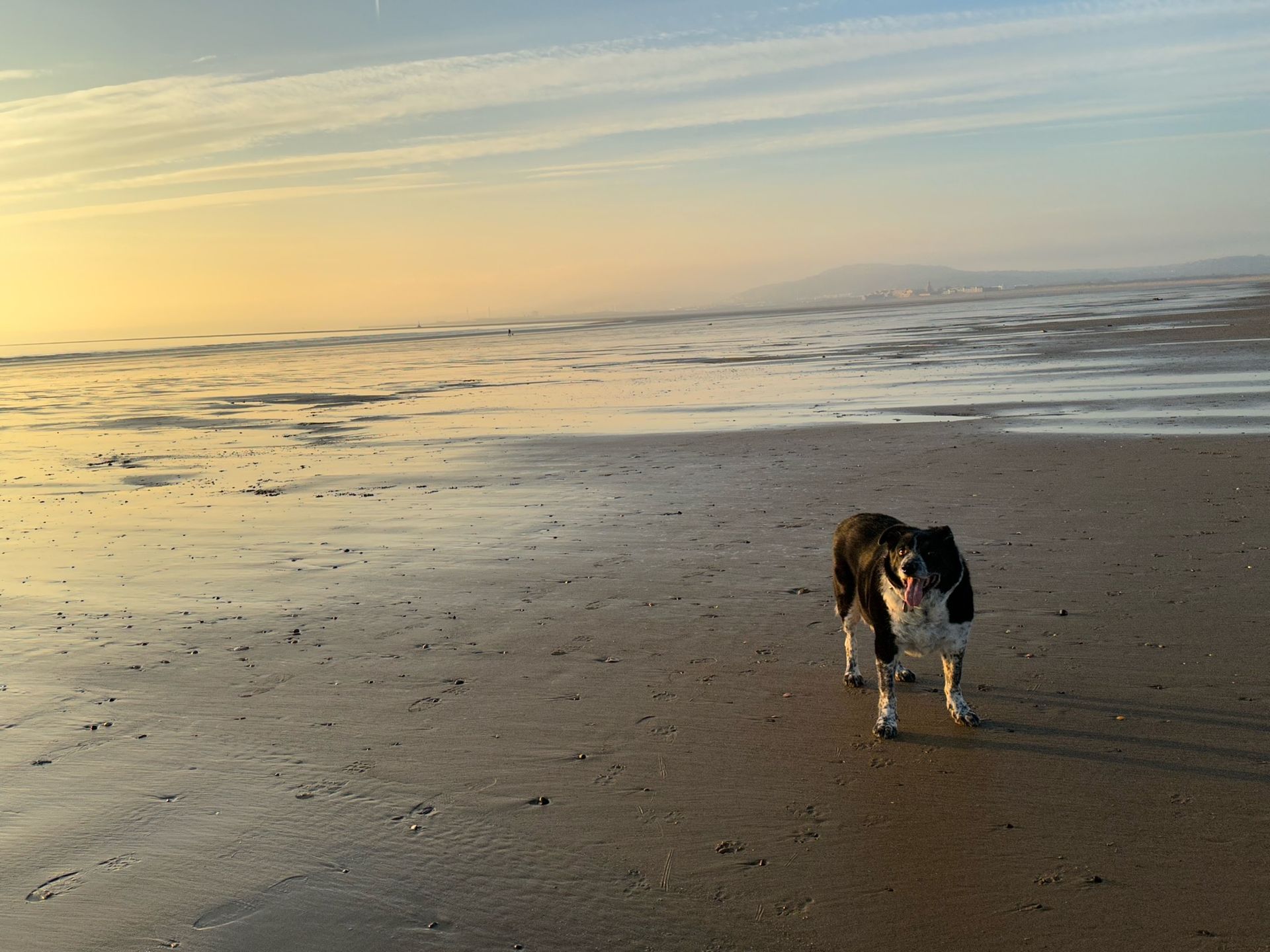 As I mentioned, yesterday I was able to visit my mother and what a glorious day it was. I believe that Herefordshire remained shrouded in mist, while in South Wales we enjoyed a glorious, sunny day, warm and calm. Toby and I went down to the beach, where he met a number of friends and played with them. I found the walk restful and invigorating. The sky was truly breath-taking and I took a number of photographs to share with you. We’ll see if that will be possible.