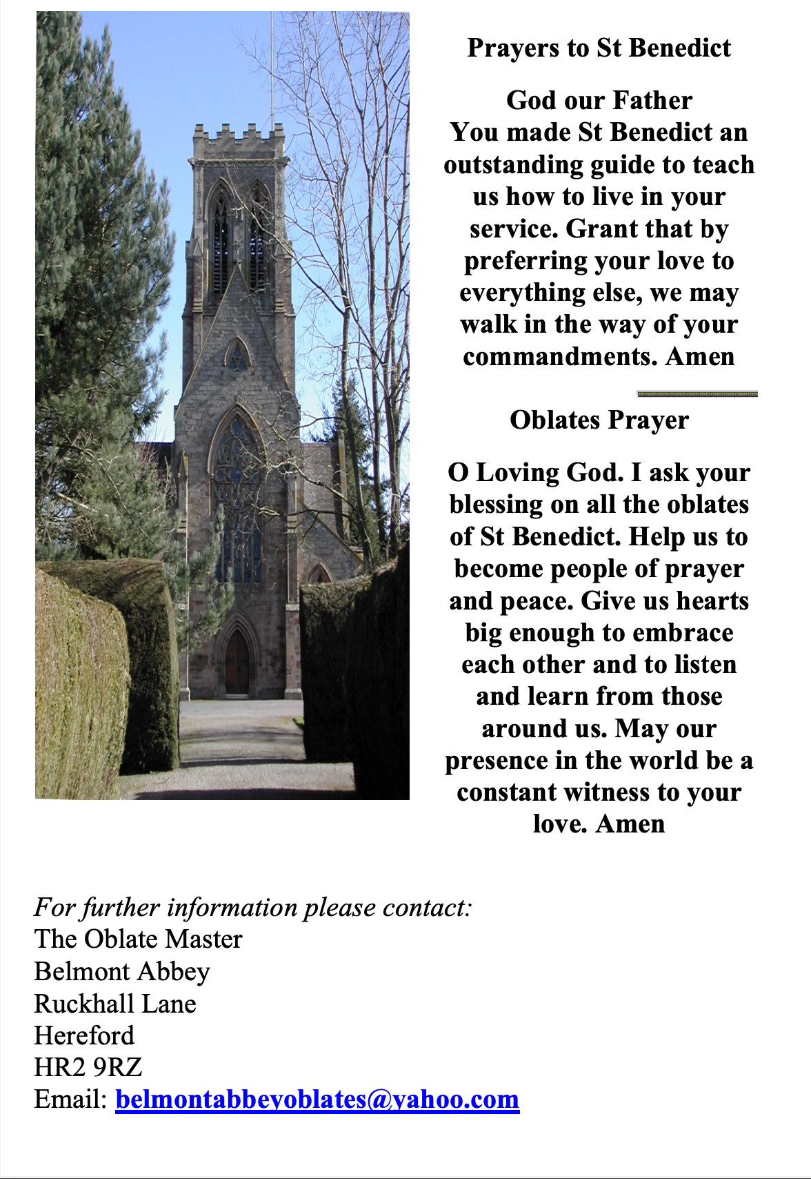 For information on the Belmont Oblates please write to the Oblate Master, or contact him in the form below: