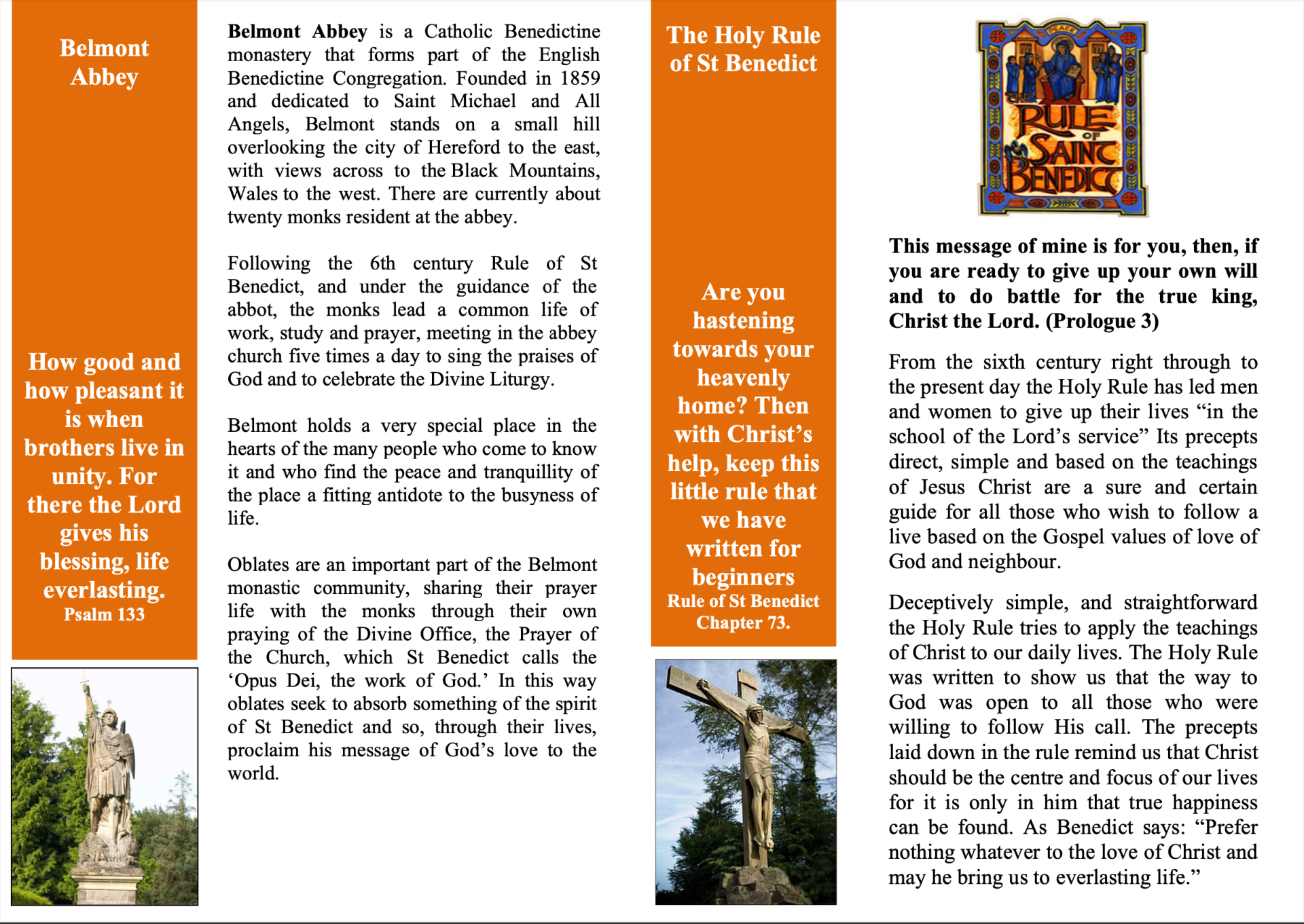 The Oblates of Belmont Abbey are an important part of our life and mission. Their prayer and witness helps extend the reach of the Abbey outside of the four walls of the monastery. Through prayer and work they seek to make Christ present in the world, so that, as St Benedict says, "in all things God may be glorified."